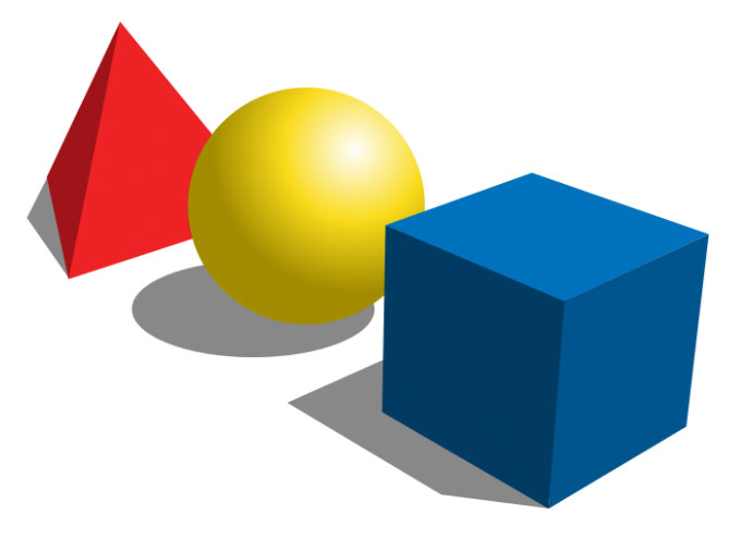 Como ejemplo de figuras volumétricas o figuras de tres dimensiones (3D) encontramos: el cubo, tetraedro, el prisma, la pirámide y otros poliedros, el cilindro y la esfera.